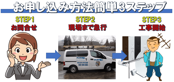 お気軽にお問い合わせください。アンテナ職人 TEL 090-3665-9348 営業時間 08:00~21:00 (年中無休)